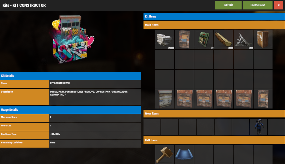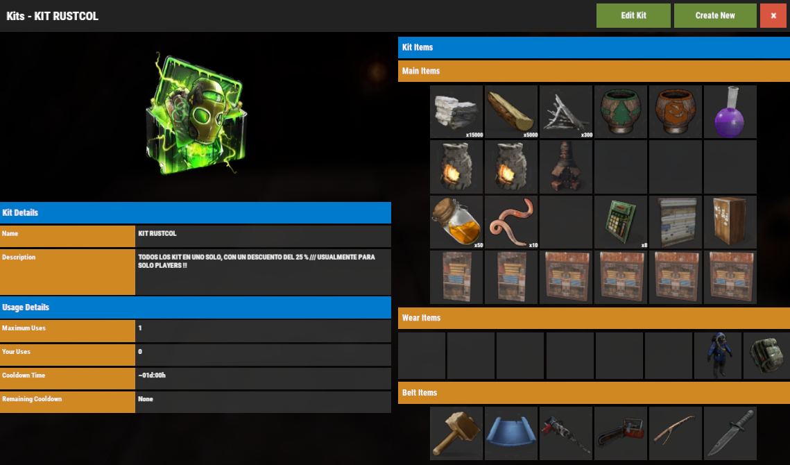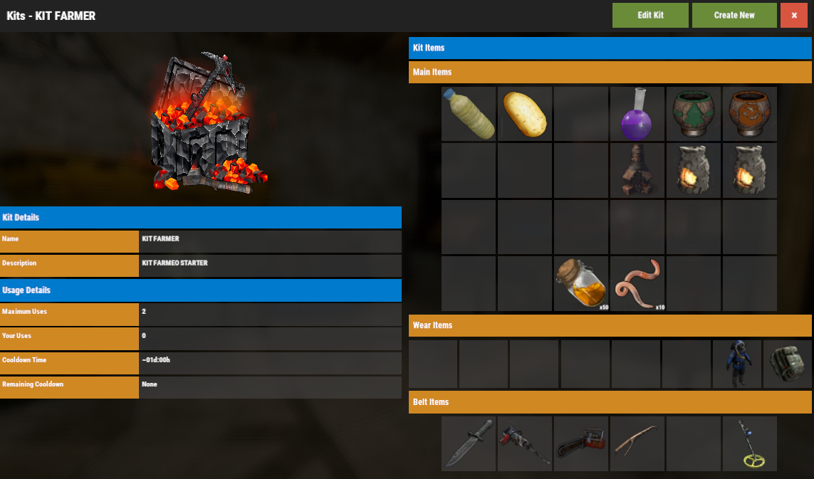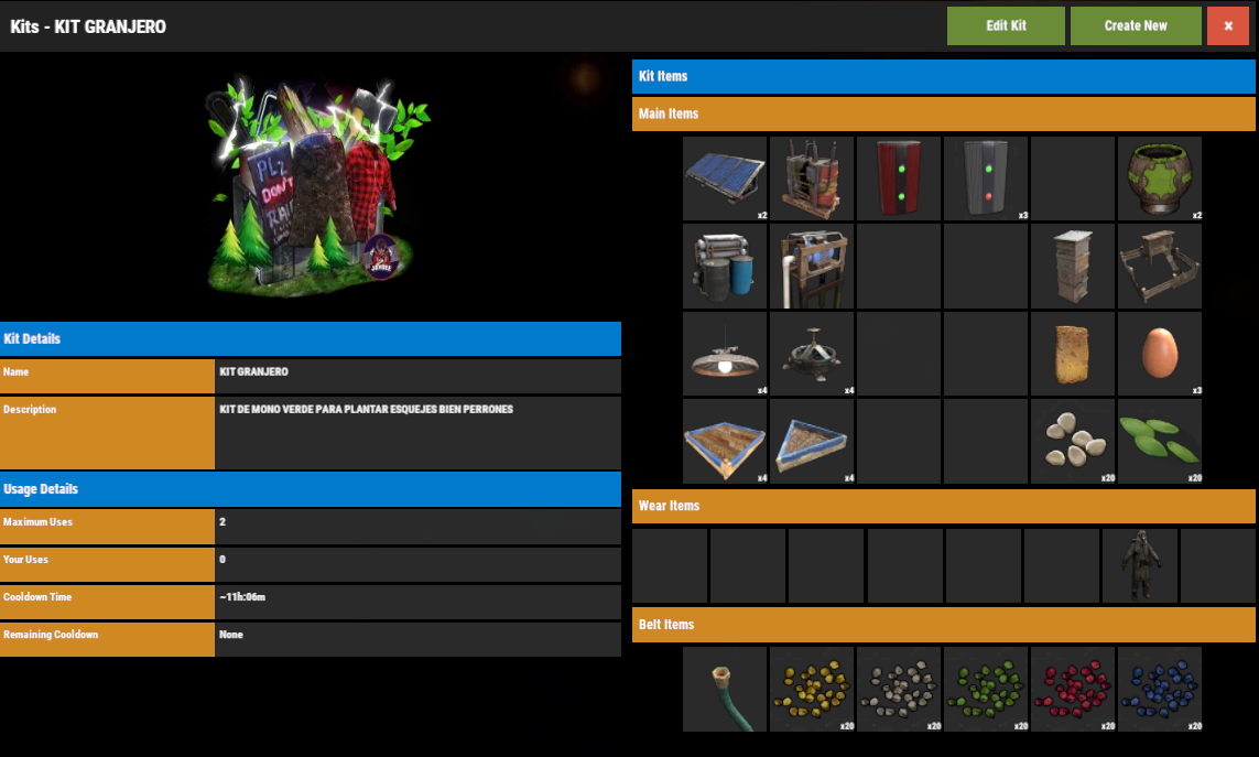 Grupo VIP con comando de chat /kit valido por 30 dias de WIPE. Este pack se reclama 2 veces por WIPE.